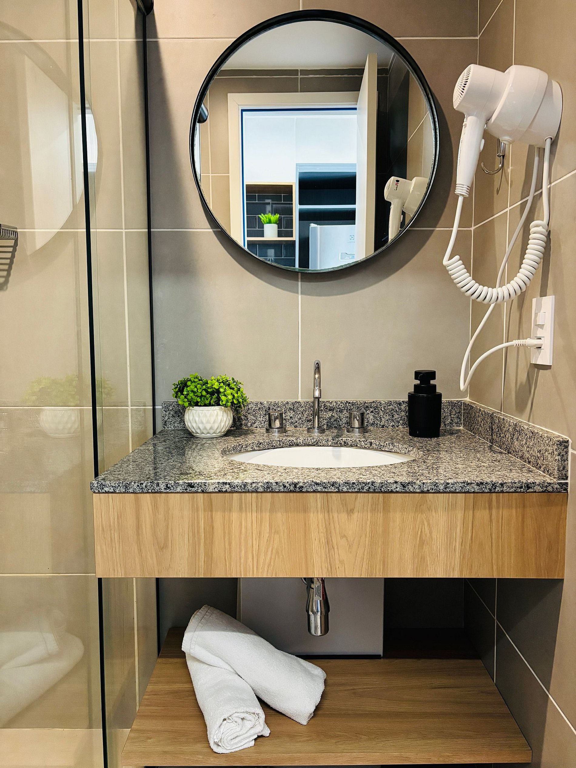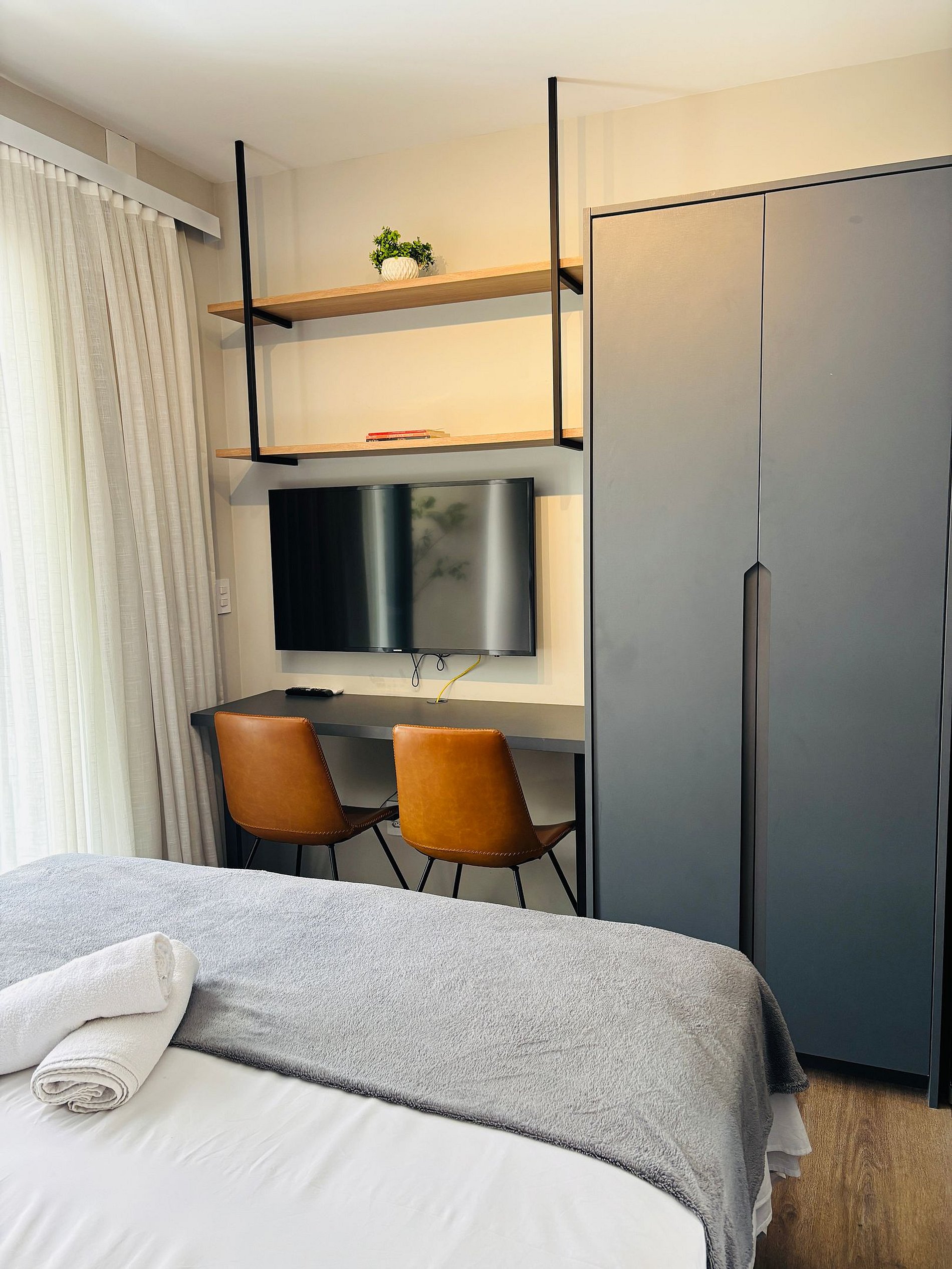 Equipados para atender suas necessidades em estadias curtas ou longas, oferecemos um ambiente completo e acolhedor. O condomínio conta com academia moderna, lavanderia e piscina. Além disso, oferecemos troca de roupa de cama e toalhas para estadias longas.