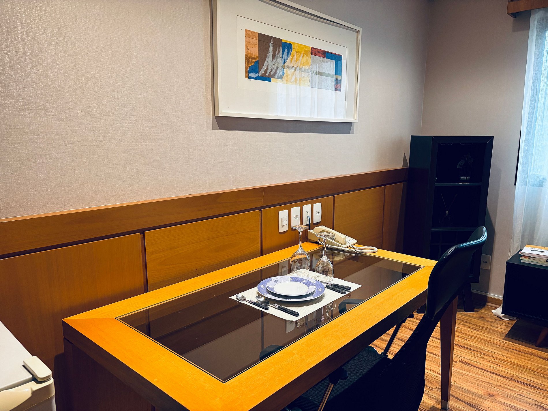 - Mesa de apoio para refeições ou para home-office.