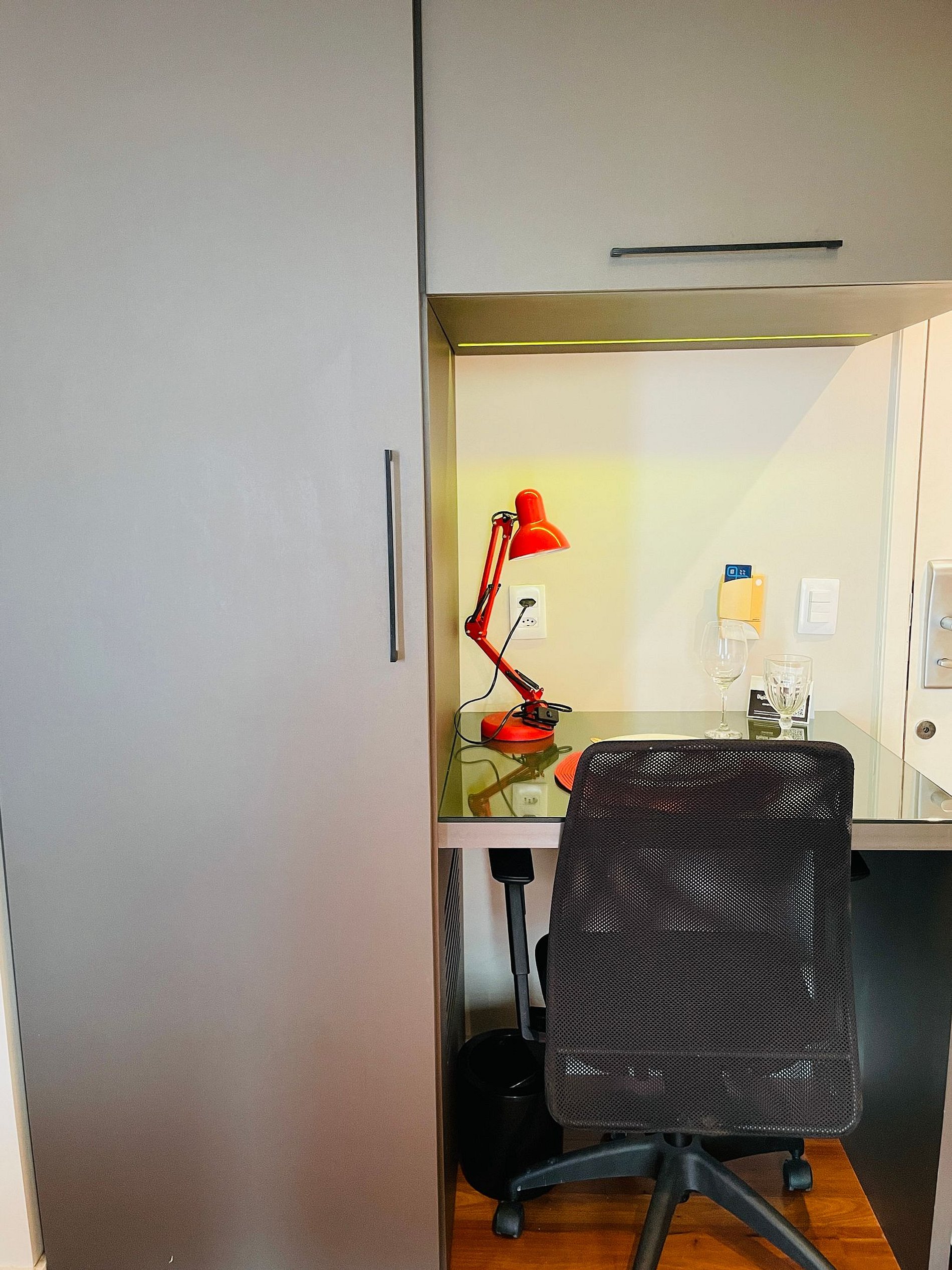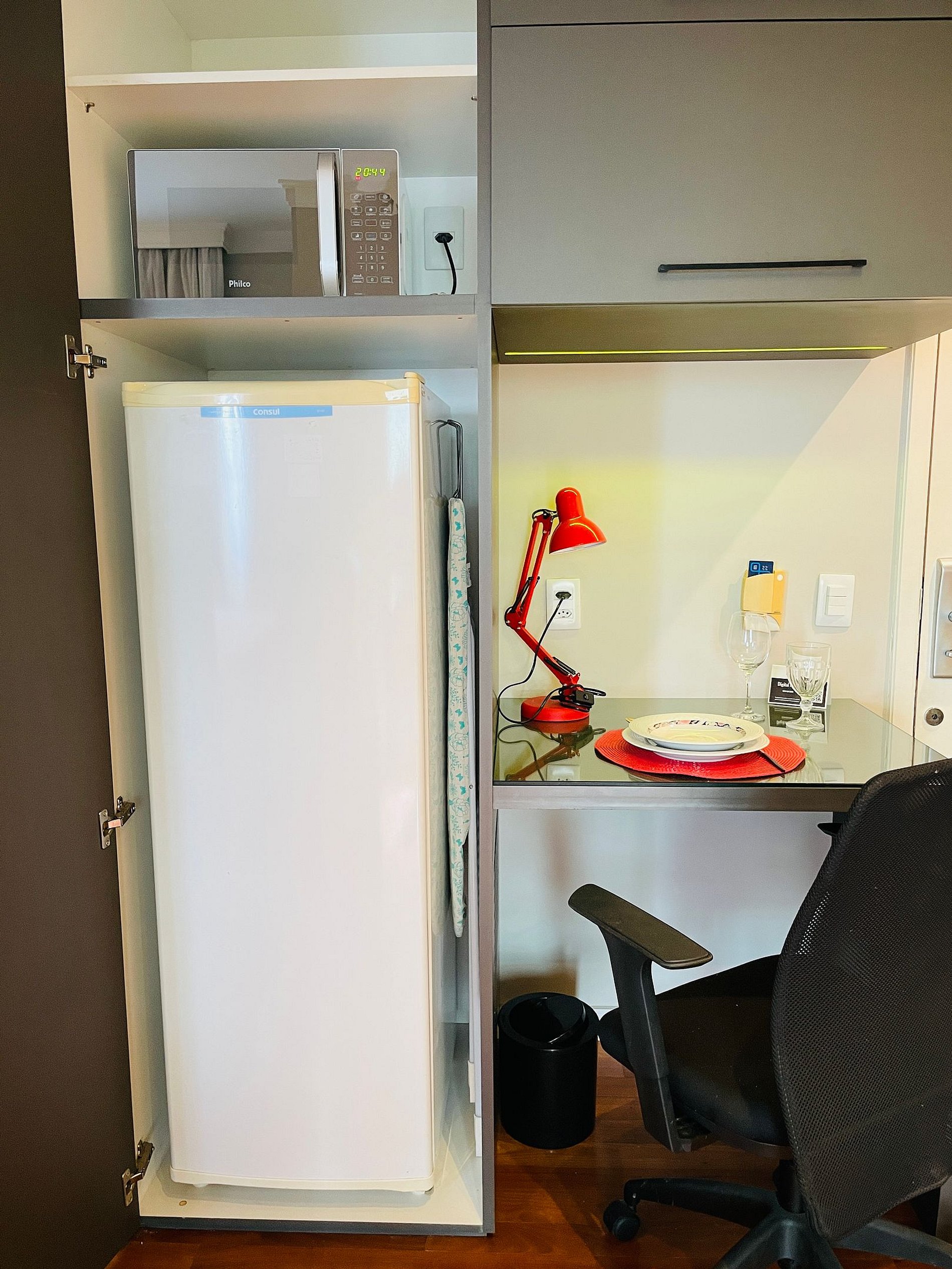 - Mesa de apoio para refeições ou para home-office.